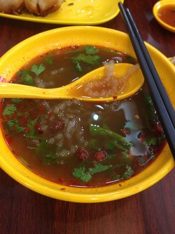 周末中午不想在家做饭吃,就会去他家解决午饭的。生煎一般1两够了。4只的,个头很大。皮很薄,底很脆的那种。肉很大,汤很多呢。酸辣粉,9元,量不大。粉很Q很弹的那种。汤酸酸辣辣的那种。查看更多