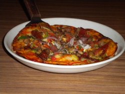 店超级小,上去以后有个小二层他们家的披萨属于我喜欢的类型,饼底很薄,很脆,酥香可口,不像必胜客,就是大饼。。但是上面的馅料比较一般~牛排比较一般,感觉更像是一块带血水的大牛肉,太生了些,有点吃不消~而且没什么味道,调味不佳,意面也只有咸味儿