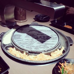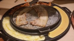 之前来过几次体验不太好 升级过后团了一份四人套餐再过来感觉好很多位置提前放了酱料跟小菜 小菜有凉拌海蜇跟腌萝卜 一般般吧烤肉锅边边也已经放了芝士跟泡菜 烤肉的时候基本上油都会往下漏 所以芝士跟泡菜上面都是油点完餐之后会在另一格加蛋液 这算是烤蛋还是蒸蛋呢 五花猪排骨肉 1份 38元 很大一块 烤的时间最长的就是这个了 没有什么味道 略柴了些 护心肉(或调味) 1份 32元 一样也是太硬了 薄薄的一片 烤焦一些蘸着孜然粉酱油好吃 牛横膈膜 1份 68元 切成粒状的 很难分辨有没有熟 调味也不够入味 份量ok 街舞猪皮 1份 28元 虽然说补充胶原蛋白 但是这个味道显得有点奇怪了 不太喜欢 香香肥牛(或原味) 1份 38元 这个是最好吃的 味道很足 容易熟 烤这个是最爽的 海鲜土豆饼 1份 46元 普通的饼 垫肚子用的 海鲜的踪影呢 牛牛芝士炒饭 1份 36元 没注意菜单 朋友看到以为是拌饭 直接搅拌了想要吃的 拌完之后服务员过来说这是最后炒着吃的 哈哈 有芝士但是味道不明显 一顿吃下来就觉得芝士炒饭的味道还不错