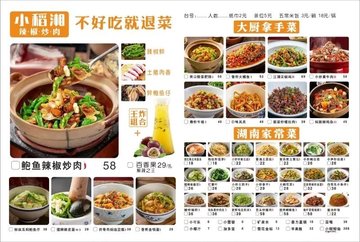 小稻湘辣椒炒肉 / 香煎大鲫鱼 / 小炒黄牛肉 / 湖南白丝瓜 / 江湖尖椒鸡 / 湘辣卤猪耳尖