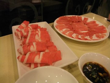 冬天的时候比较冷吃火锅式最暖和的了 这里的环境也不错很干净整洁的,鸳鸯锅底 清汤锅底都很不错食材很新鲜,要了一份肥羊肉,肥瘦相间的很不错涮在锅里吃着很嫩口,午餐肉,墨鱼滑也不错都很好吃 很新鲜爽口