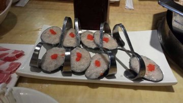 小肥羊也算是家连锁型的火锅店,这家店开在兰溪路上也有年头了,生意一直很红火。它家主要是以羊肉为主的,个人却比较喜欢它家的鲜虾滑,它家的虾滑都是用新鲜的虾仁手工打制出来的,虾滑还放在类似汤勺内,每个上面还放了些许虾籽,味道非常鲜美好吃。