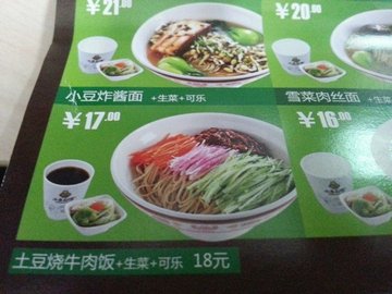 这是一家连锁快餐店,店面不大,装修简洁大气,环境很是干净,服务员干净利落,不是很热情,但是服务周到,有求必应。 他家餐的种类很多,还有砂锅类。 我喜欢他家的但但面 担担面套餐,一碗担担面,一个豆腐丝凉菜,一杯可乐. 面条很辣但是辣的很香,面条有点劲道,吃到嘴里很有咬劲,小凉菜一般般,没有啥特色。 他家的分量还比较足,食材也新鲜,味道也不单薄,价位很是平民化,作为工作餐吃还是不错的。