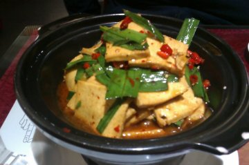 川香麻辣鱼:鱼肉很多,下面铺了豆芽菜,放在一个大的容器里面,下面点上酒精加热,麻辣味道十足,放在我跟前眼泪都流出来了。鱼的刺很多,也很近味。