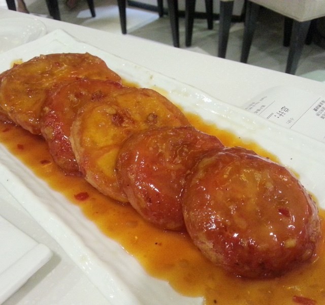 虽然只有12元,但是很大一盘,没有吃完,还打包带回家早饭喝粥时吃。花生米的酸味正合适,但是甜度实在是太甜了,而且里面放了麦芽糖,所以吃的时候很粘口,花生米不是脆脆的,而是酥酥的。