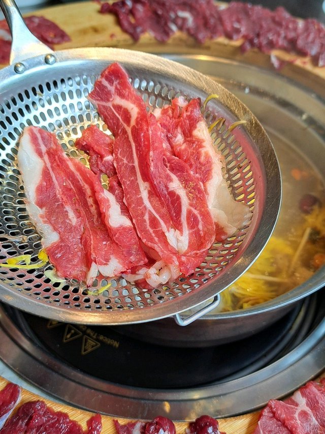 假日去深圳放鬆一下,要吃火鍋要去就犟牛肉火鍋吃到飽 進入店內有個很大好吸引的落地玻璃廚房,牛肉是自家農場提供的,看見師傅即場不停地切新鮮牛肉,多款不同牛肉種類湯底選擇了 [ 金絲皇菊牛骨湯鍋 ] 香濃菊花味,湯鍋味口感有微酸,而且清暑解渴,清熱明目,吃牛肉火鍋首選是,喝完非常解膩 等了一會,一份首創 [ 就犟大團圓 ] 就出現在眼前,是由一個大大的圓圈放有一共有六種不同牛肉組成,賣相吸引,每款都十分鮮嫩美味,包括有肥牛、吊 龍、匙仁、匙柄、胸口油、牛舌,師傅刀工十分好,切得每一片都薄薄的,牛肉味香濃多汁,每一款不同口感,有些鮮香滑嫩、肥而不膩 、柔軟脆爽再來要一份 [ 吊龍 ] 吊龍肉質軟嫩細膩,而且肉汁鮮甜飽滿,味道香口,入口即溶的口感;2串 [ 牛肉串 ] 孜然香氣,牛肉香濃,有咬口而不 韌,可選擇辣或是不辣,辣的惹味好好吃,厚肉多汁,每一粒超滿足還有首創制大粒的 [ 黑松露牛肉丸 ] 黑松露香味與手打牛肉丸結合而成,比一般丸子大,入口咬一下爆汁,口感彈牙爽脆份量滿滿的 [ 牛肉煲仔飯 ] 滿滿焦香米飯味道,飯底焦脆;每一口吃到嫩滑牛肉粒,鹹香味滿滿的,香而不膩[ 菌菇拼盤 ] 黑牛肝菌,味道鮮美,濃濃的醬香味道,入口細滑,好香。 搭配杏仁香味的姬松茸,口感脆嫩鮮香。 金耳菌,每吃一口滑嫩爽口,好特別,清香鮮美[ 潮汕特色香腐 ] 豆香與湯底超配,豆腐超滑,入口細膩柔軟…查看更多