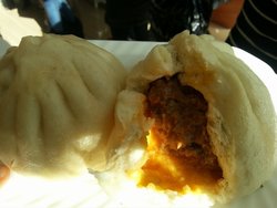 山东柴府大包店小,但生意非常好,附近工作的人都到这里来吃工作餐,价格不贵,挺实惠的。牛肉包5元一个,非常大,里面的馅都有拳头大了,吃着Q弹可口,纯肉馅的,吃着非常过瘾,咸淡也挺适中的,包子皮很薄,味道非常不错。