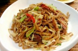 咱家一绝好多人推荐,确实不错,其实就是面饼和肉丝的组合,面饼有点像千层饼,但表面两层是脆的,撒满了芝麻,里面软软的,整个饼单吃就很香了,再配上肉丝,包菜,口感丰富,确实不错。另外,他们家的西红柿手擀面和油泼面还有炒饼也很喜欢…查看更多