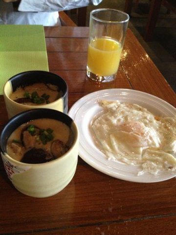 酒店送的自助早餐种类很丰富茶碗蒸很好吃老公连吃3碗我让老公帮我拿了一个“三分熟”的煎蛋害得老公被嘲笑其实就是溏心蛋这里的拿铁很好喝,奶味十足,比起星巴克有过之而无不及,太对我胃口了酸奶偶要了黄桃和香草籽口味的养草籽味的实在太好吃了,为什么超市没有看到过,55555555555橙汁的味道就一般般,甜了一点可丽饼、松饼、杂粮面包(黄油、杏酱、蓝莓酱)也都很好吃尤其是可丽饼,太好吃了,偶一连吃了2块金枪鱼三明治本人非常推荐,里面的金枪鱼很多,外面的面包非常特别,口感酥松奶油烟管面偶觉得还行,老公说难吃偶还拿了咖喱鸡块,被老公BS,说一大早就重口味老公是肉食动物,一上来就拿了一大盘香肠、熏肉、培根香肠很好吃,熏肉一般,培根很难吃,又老又咸,咬也咬不动奶酪、鳗鱼都很难吃牛奶泡谷物是必吃的,偶在里面放了很多核桃仁,太好吃了这里的水果也很甜,虽然有些是罐头出品9点多去吃早餐人已经很多了直到吃完陆陆续续都有人来看来人气不错哦以后有机会来试试他家的午餐和晚餐