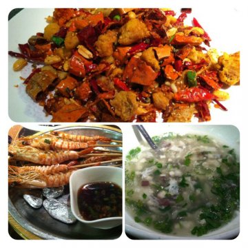 川味观不算正宗川菜,但改良得很符合本地人口味。烤鱼是每次必点,上面抹了柠檬压住腥气,辣度也适中;鱼应该是活的吧,吃起来很鲜嫩;配菜里花生米很赞,但吃多了会上火。馋嘴牛蛙烧制得很入味,师傅切块比较大,很适合我等肉食者,咬下去好满足哈