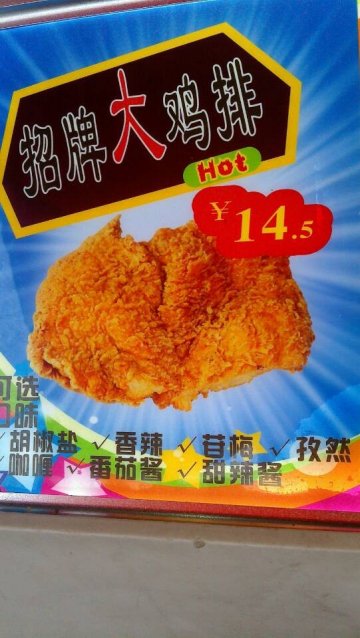 因为韩剧的热播,MS现在流行走炸鸡路线啊。这里光看招牌会和巴弟鸡排很小哦。 不过这里的鸡排不错,口味选择多样,鸡排个头也大,厚薄适中。喜欢香辣味和甘梅味的,服务挺周到,路过总忍不住会买一块来尝尝,那个香啊。