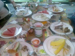 刚开张的时候去了的,人很多,餐具也很新,参加一个团购可以38元一人,价格很平明化,适合家庭聚会,里面中西餐都有,服务员也和多,服务态度很好,可以带一个1.2M以下的儿童免费进餐,我觉得是一家很不错的自助,不知什么原因停业很久了,前天再去已经拆了,可惜。