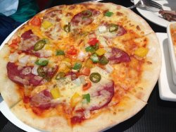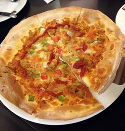 这家店位于朝阳区朝阳门外大街18号丰联广场B1楼。地方不算小,不知道是不是因为在地下的缘故,感觉有点压抑。中午去的,人不是太多,没等位。午餐有特价的工作套餐,25一份,主食+饮料,还挺划算。点了海鲜意面+果醋,结果上来发现量不是很大啊,又加点了一份披萨。海鲜意面,量一般,只有少少的几个虾仁和鱿鱼,番茄汁倒是量挺足,味道还可以。果醋味道有点淡啊,难道加水了?披萨个头还行,就是饼底太厚了,馅料有点少。查看更多