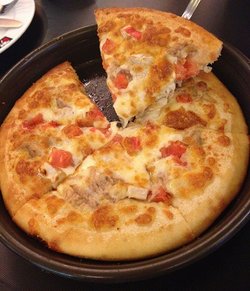 跟2位老同学逛丰联广场,中午就在地下一楼找吃的,看见这家店不错,人也不多,主要是装修的挺漂亮的。鸡汁焗薯泥,开始以为有鸡肉,后来发现是鸡汁,不过味道很香,挺细腻的。果香鸡排,酸甜酱汁很开胃,鸡排就是一个大鸡腿,不到30元,很超值。脆边牛肉披萨,饼皮特别的酥脆,牛肉不算多,却也很好吃。铁盘金枪鱼披萨,9寸的披萨,不过金枪鱼很少,趁热吃,饼底很厚,口感不错。查看更多