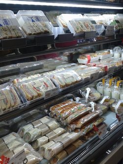 这家店最吸引我的是他们家的蛋糕,做的好精致,有很多很适合小朋友的蛋糕,蛋糕上面有各种图案,超级卡哇伊,不过价格也蛮辣手的,随便一个8寸的蛋糕就是200多,真的是吃不起,反正家里也没小孩子。他们家面包和小蛋糕还是可以吃吃的,虽然觉得比一般的面包店要贵,但是觉得还蛮好吃的,对得起这个价格。各种三明治算是他们家性价比最高的了,适合带出去野餐,很方便,关键是里面的内容丰富,肯定能吃饱。我平时早餐吃的比较多的是蒜泥法棍,超级实在的,蒜泥味很香,法棍绝对有口感,咬得动。12块钱一袋子,这个比较划算