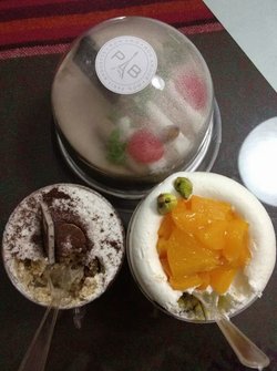 巴黎贝甜的点心做得很精巧,不但外形很好看,味道也都很合胃口。慕斯蛋糕比较中意芒果的,上面有很大块的芒果果肉,而且很新鲜。提拉米苏里面的朗姆酒味道有点重,不过加上很厚的一层可可粉,味道就好吃很多了。