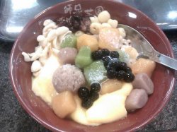 芋圆应该是台湾的小吃吧,我最喜欢吃这家的芋圆了。芋圆的味道非常的Q,在芋圆粉里面加上不同的东西,芋圆就会有不同的颜色,比如紫色的,黄色的等等,味道倒是都差不错,芋圆加上煮烂的红豆,和一些煮红豆的汤汤水水,味道更是不错。查看更多