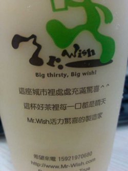 希望先生 MR.WISH 这家店是我每次路过都会光顾的一家店,这家店面不大,但是店内饮料的种类非常丰富。比较喜欢它家的招牌珍珠奶茶,它家的珍珠不是很大颗粒的,色泽黑黑的,入口弹性非常不错,它家的奶茶内茶和奶的比例适中,谁都没抢了谁的味道,非常美味可口。它家的价格也不贵,属于非常不错的选择。查看更多