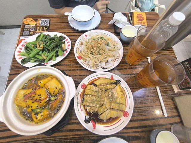 同行朋友十分喜歡北上(深圳)食🐓🐔, 我們選了2人餐.有必選的沙薑雞(倒牌), 百香果豆腐, 豬油渣炒菜心, 香油撈粉. 2人餐還包2柸飲品 (茅根雪梨冬瓜水)沙薑雞 ~ 咸香味十足,沙薑雞肉嫩滑又有雞味,雞皮也不肥脆脆的👍🏻百香果豆腐 ~ 這款豆腐好特別,我也是第一次食.超越推介. 豆腐炸得脆脆再配上酸酸甜甜的百香果醬汁出奇地夾. 比起類似的甜酸豆腐更多了一份百香果的清香味道. 這個豆腐也可以伴幾碗米飯🤣豬油渣炒菜芯 ~ 普普通通的炒菜芯,用了豬油渣炒更香口更有鑊氣.香油撈粉 ~ 幼身河粉(粿條)涼伴撈了香油後更滑流,再加上芝麻及花生粒粒更加香脆.茅根雪梨冬瓜水 ~ 清甜滋潤,夏天户外熱辣辣.飲番一柸透心涼又解暑👍🏻.總結,每碟菜式份量都算多.雖然是2人餐但是應該足夠3人食😆價錢也不算貴.而且,地點也方便在國貿地鐵站附近,又近羅湖關口,又近東門.食飽飽後仍可以去行街或回香港.唯一餐廳冷氣一般不太涼,椅子也是普通摺凳.雖然餐廳環境及傢俬好看,可惜不好坐…查看更多