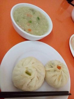 庆丰包子,包子还是一如既往的喜欢猪肉三鲜的,虽然现在包子个头有些缩水了,趁热吃口感和味道最好了,皮非常的宣软,馅很多,整个就是个肉丸子。粥也会点紫米的,熬得很浓稠,我觉得会不会是加了淀粉或者什么,太稠了;搭配的凉拌菜很难选择,主要是带老人、孩子不好选,大多是辣味的,不然就是硬的,不好嚼动的那种查看更多