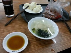 这家店正好在老公单位附近,周末遛弯溜到这里又懒得做饭,就想随便吃点。店内点餐的地方在左边,右边是取餐的地方。全虾馄饨的汤,比白开水还不如,9米/碗。要了几两包子,都不是现包的,应该是速冻然后配送的。皮挺厚的,馅吃着挺一般,作为工作餐能忍就忍了,要是有时间还是自己家做的更好吃。性价比感觉特别低,还不如吃肯德基麦当劳之类的。店内晚饭时间都没什么人,结账的地方有卖素丸子的,12一斤,比超市都贵,想着可能物有所值,结果又让我失望了,估计以后是不会再吃庆丰包子了。同样是老字号,边上的稻香村倒是保持了老字号的水准,真不知道庆丰的包子怎么越来越差了。服务员也很没眼力价,店内的座位距离很近,里面的人还没吃完,就把桌子给堆在一起,弄得在里面吃饭的人都出不来。…查看更多