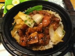看完电影 在这边吃晚饭同事说这家她经过好几次了 不过一直没有吃过那就这家了进去之前 阿拉还很次的上DP看评价同事说3星半想着没吃过 不管好坏 尝过算数 就去了结果 感觉味道还不错啦 这家是做煲仔饭的我点了黑椒牛仔骨饭 外加奶茶一杯同事点的土鸡香菇饭 再加柠檬柚子茶一杯煲仔饭上来 服务员掀开盖子浇上酱油的茨茨声 真心诱人啊我们果断一起说 喜欢下面的锅巴看着不大 一份下去很饱的 最后还是没吃完除了饭 还配有2份小菜的奶茶是真心不咋地 比较难喝这边也有套餐的 就是煲仔饭+每日例汤 35米例汤单点是15米煲仔饭都是28米的 环境么还可以吧 蛮干净的因为我们是8点左右进店的 估计他们快要结束了吃到一半 听到服务员说 不要放人进来了然后偶们聊的正high 服务员过来收碗鸟偶们只能走啦。。。查看更多
