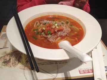 这家店的地址在中关村大街19号新中关购物中心B1楼D225室, 中关村,环境还是很不错的一家店,就是价格小贵,他家的面人均要四五十左右才能吃饱了,番茄牛腩面吃着口感还是挺好的 ,面条是那种手擀面似得吃着挺劲道爽滑的,味道也不错,就是面的量不是很大 ,牛腩也是就那么一点点