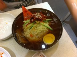 西四一带延吉冷面馆有好几家,水平应该是齐平的,我自认为府右街北口的延吉冷面应该是发家时的那间。有点儿怀旧地游完北海,就直奔延吉找记忆去了。绝对是国营店的范儿,所有的修饰都透着简单实用,店面对于冷面馆来说算大的,菜品一个挂牌都包括了,专营冷面的,目力集中,两个人吃两碗面外带一盘拌辣牛肉,48元,要说也不算便宜,但是正宗的冷面不是哪里都可以吃到的老习惯自己到窗口取面,大师傅拿起大勺往已制作好的冷面碗里浇上最有特点的凉汤,据说这汤可是用特别多种食材煮制而成的,很见功夫,秘诀也在这汤里浇上些辣椒,冷面的辣椒红但不是特别辣,拌匀,入口,爽了,现在配肉不是狗肉而是牛肉,我倒觉得更和口味,面呈小麦色,还是那么有劲有嚼头,回忆感全来了,还是从前的那个味道…查看更多