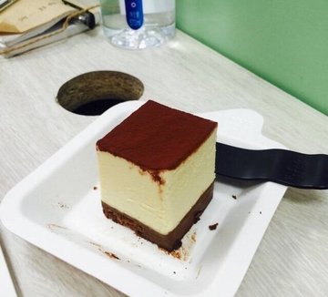 买的黑白巧克力慕斯,两磅的蛋糕真的很大很好吃,在办公室的同事之间分享,也是很好分呢,每个人都有份,蛋糕的层次感从侧面就能清楚的看出来,上面一层厚厚的是巧克力粉,味道不苦涩,微甜,化开后有浓郁的巧克力味道,蛋糕层很香软,下层还有一层巧克力味道,惊喜一重接着一重。