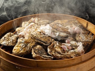 清焖珍珠蚝 / 蒜蓉珍珠蚝 / 黄金一号大蚝 / 美人钻刺身蚝 / 爆汁牛肉串 / 风骚茄子
