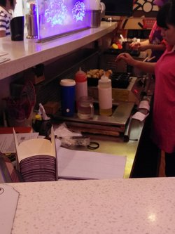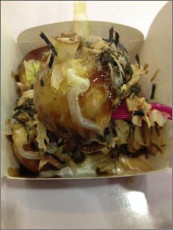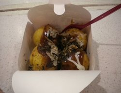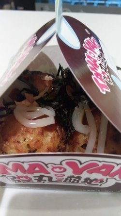 这家店在地下一层,买的人比较多,需要等。丸子是现做的,叫号,等了10多分钟的样子。买的章鱼皇,这个丸子比较大,相当于乒乓球那么大,里面有章鱼块和蔬菜,10元4个可以当饭吃了,丸子的味道有些淡,加了些芥末酱还好。查看更多