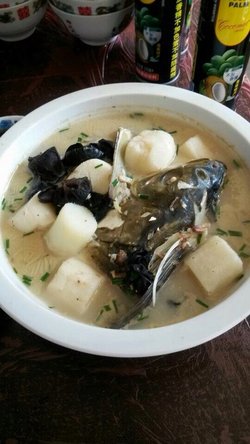印象最深刻的是鱼头汤,可以看到是从炖了很久的锅里拿出来的,汤底是白色的,吃起来非常有鱼肉的鲜香味,鱼肉虽然炖了很久但是还是很好吃,嫩嫩的,觉得反而把旁边萝卜什么的味道都煮进去了,混合在一起的香味更胜鱼头本身