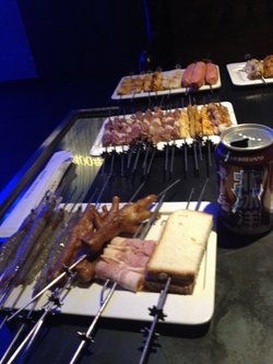 第一次来它家吃饭,首先觉得它家的环境有点昏暗,以蓝色调的灯光背景,比较另类吧,烤串我们要的羊肉串,鸡翅,还有五花肉,还有牛肉串,还有最喜欢吃的金针菇,金针菇是大盘已经烤好的,很嫩而且很入味,越嚼越香,以后还会在来吃的。查看更多