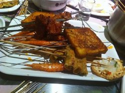 最近挺火的一家烤串店,就在欢乐汇KTV东侧1楼,环境布置的就跟酒吧似的,很适合聚会什么的。每桌旁边有个小架子,可以放肉类。桌上的烤架很干净,还是可以旋转的,省事不少。烤串类其实最爱吃的还是羊肉串,3元一串,的确是鲜肉做的,盘子里一点血水都没有,而且嚼着也特别的劲道。查看更多