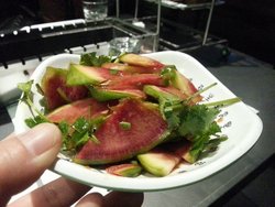 很久以前只是家串店挺像是酒吧的,室内的灯光很暗,音乐动感十足,很热闹。串串味道一般,鱿鱼须还可以,吃着QQ的,很劲道,蘸辣椒酱吃有点铁板鱿鱼的感觉。凉拌的萝卜皮吃着清脆爽口,萝卜用的是心里美萝卜,颜色鲜艳,吃着很开胃。查看更多