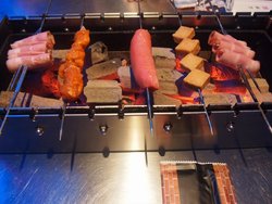 这家店就开在饭馆一条街里,尤其夏天周围一溜都是大排档、烤串之类的,但这家店从门脸看装修就算比较有特色的。烤串确实也比较有特色,自己动手烤,火炉上面架着肉可以自动转,烤熟了的可以放在上面慢慢吃,还不容易凉。但说真心话感觉这家店花样都比较新颖,广告天天开车听,味道实在太一般,尤其调料反正不合我胃口。点评有一段有88折代金券但只能周一到周四使用,价格也不便宜,两个人怎么也得吃150左右吧。查看更多