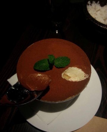 又来韩寒的餐厅捧场啦,竟然觉得菜品有点萌萌哒的赶脚,提拉米苏好可爱啊,两片薄荷叶子在上面看上去很有爱呢,挖了一勺上面的巧克力,味道先苦后甜,老北京鸭馅饼,鸭肉竟然有点烤鸭肉的赶脚,吃起来好酥香的,豆腐做的有点接近于川味儿的那种,甜辣型的。
