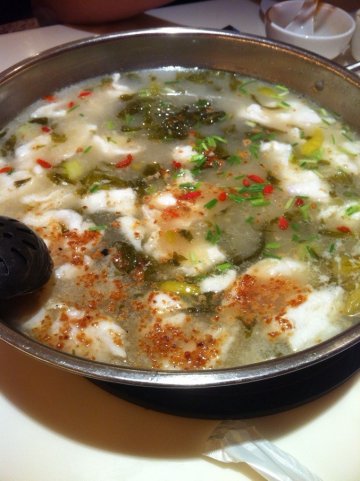 电视里的美食节目,只要介绍酸菜鱼都会提到这家店。酸菜鱼锅真的很实惠,两个人只要点个小锅就足够吃了。里面的鱼片很多,肉质吃的出是很新鲜的,酸菜的味道是越煮越浓郁。老妈平时不爱吃火锅的,那天她居然吃得比我还多。其它配菜就觉得一般了,牛,羊肉直接拿塑料盒装的,装蔬菜的盘子都破破的。下次去估计就点个锅底吃吃了。Ps,它家自制的豆浆的免费的,不过就是淡了点。