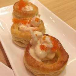 看到广告上必胜客出了很多新品,看起来很诱人哦中午去吃了一顿要了鱼籽酥盒味道真不错不过就三个,而且个头不大一口一个里面有一只虾仁,上面还有鱼籽酥盒就是酥皮,很香很脆好吃的~午餐的沙拉也不错我喜欢土豆沙拉查看更多