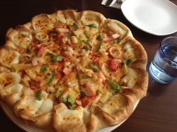 休息天中午不想做饭去吃的,去的时候已经12点多了,人依然很多,等了一会位,提前看了菜单。点了个一半一半的披萨,一份千层面,两份小食,饮料好像点的奶茶。披萨一如既往,芝士很好,拉丝不错,馅料满足的,很喜欢。千层面有点糟糕,不好吃,卖相也比较难看,小食一般般吧,不功不过。饮料还行,挺好喝的查看更多