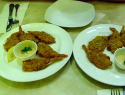 周一的时候去必胜客吃个饭还是很不错的呢,因为现在香草凤尾虾逢周一半价。虾处理的很干净,从中间被分为两半,稍微挂一点浆,下油炸的各种松脆,调料加的很少,基本上保持了虾的原味,上桌后根据个人口味可以添加柠檬汁,蘸千岛酱吃。一定要趁热吃哦,凉了或者再次加热很影响口感。查看更多