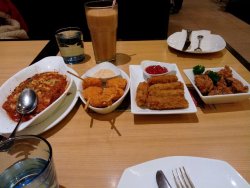 单位附近真的没得啥子吃的,或许有,也吃得差不多了。走到宽窄巷子这儿来买咖啡,往回走的时候想到将就在必胜客里面把午饭吃了。天天走这儿过,一次都没有进来过。进来了才晓得中午还有特价工作餐,29元起,一份主食,一份沙拉,一份饮料或者汤品。多化得着。于是我点了37元的。欧式培根炒饭,味道不错,但里面居然加了芽菜,好神奇,幸好味道还将就哦,太有“创意”了嘛、土豆沙拉,相当小一份,不过一个人吃够了哈。冰柠檬红茶,还是一如既往的美味。…查看更多
