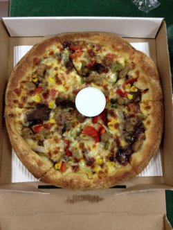 2012年10月18日中午没啥吃的,就叫了必胜客的外卖。网上订餐,选择匹萨,选择送达时间,外送员好准时的,十二点准点送到。点了黑椒小牛排匹萨55元一个。匹萨还是热乎乎的,起司能拉得出丝,每一小片匹萨上面有1-2片的牛排片和蘑菇、番茄等等,营养又美味。查看更多