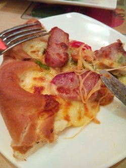 必胜客 Pizza Hut越来越喜欢这里了,东西好吃不说,价格也很实惠,而且这家的匹萨很好吃的,就普通那种不带芝士的至尊披萨,其实就够了,芝士什么的卷边,我吃下来也没多少味道的,普通的中号50多一个,当中也有芝士的,切开来的时候,拉丝很神奇的,匹萨上面的培根薄片也覆盖很多的,吃着很香的,番茄酱酸酸甜甜的铺在底部也增色不少。查看更多