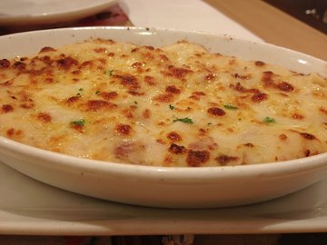 芝士焗海鲜饭,量蛮大的,上面铺着厚厚的芝士,舀一口的时候能见到长长的拉丝,拨开芝士就能看到当中雪白的饭粒了,芝士的味道浓郁,有香香甜甜的番茄酱味道,当中还有可口的蘑菇。不管是小食,披萨,面类,必胜客还是不错的哦。