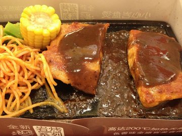 必胜客的晚餐还是很不错的,滋滋岩烤系列的牛排也是挺诱人的。牛排7分熟,加上浓浓的酱汁,还带着姜汁的微辣,感觉很赞。薯蓉也是每次都要点的,芝士的味道很浓,厚厚的。