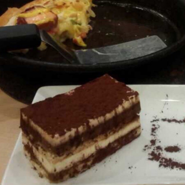 最爱的一家披萨店哦~这家的料很足的,蛮不错吃的~披萨最爱海鲜至尊,厚底的,蛮有口感的,饼边脆脆的,很好吃,海鲜的料也足,大虾,还有鱿鱼什么的都蛮多的~新品的甜品巧克力巴菲很推荐哦~这个上面是个蛮大的冰激凌,蛮好味道的,下面有层脆脆的皮,烤过的,很香,再底下的是提拉米苏蛋糕,味道蛮好的说~