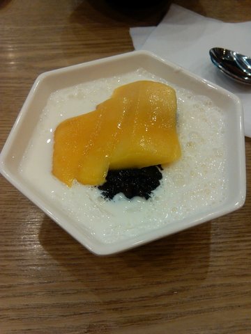咳咳,跟闺蜜一起歇腿儿等餐厅营业的节奏,点完餐看一直没给上,问了一句才说,工作人员去厕所了,只能等他回来才能榨汁,艾玛。人家不上完厕所我们就吃不上,囧。芒果布甸,17米,现成的上来的比较快,芒果肉很甜,布甸可以理解为果冻的节奏,QQ的还不错,布丁控神马都爱啊真是•••等的花儿都谢了的芒果西米露,23米。价格倒是很亲民,芒果非常新鲜,芒果汁味道也还不错,西米稍软了一点。比起某家店,这家的芒果相对质量好很多,不会是黑乎乎的一大坨。价格适中,服务态度稍差。