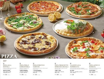 餐前面包 / 精选海鲜披萨 / 龙虾面 / 提拉米苏 / 黑松露披萨 / 澳洲西冷牛扒