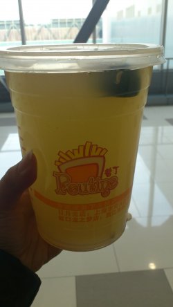蛮特别的一家店,做的是各种小吃,披萨做的是卷起来的那种,饮料是超大杯的,土豆是串在棒子上很高一串的。点了旋风土豆和超大杯的金桔茶,旋风土豆点的是梅子味的,梅子粉撒在上面还蛮好吃的,土豆炸得软软的很厚实的一片一片的,旋风土豆很大一串真心是吃不掉。金桔茶么无功无过,很大一杯,很解渴。查看更多